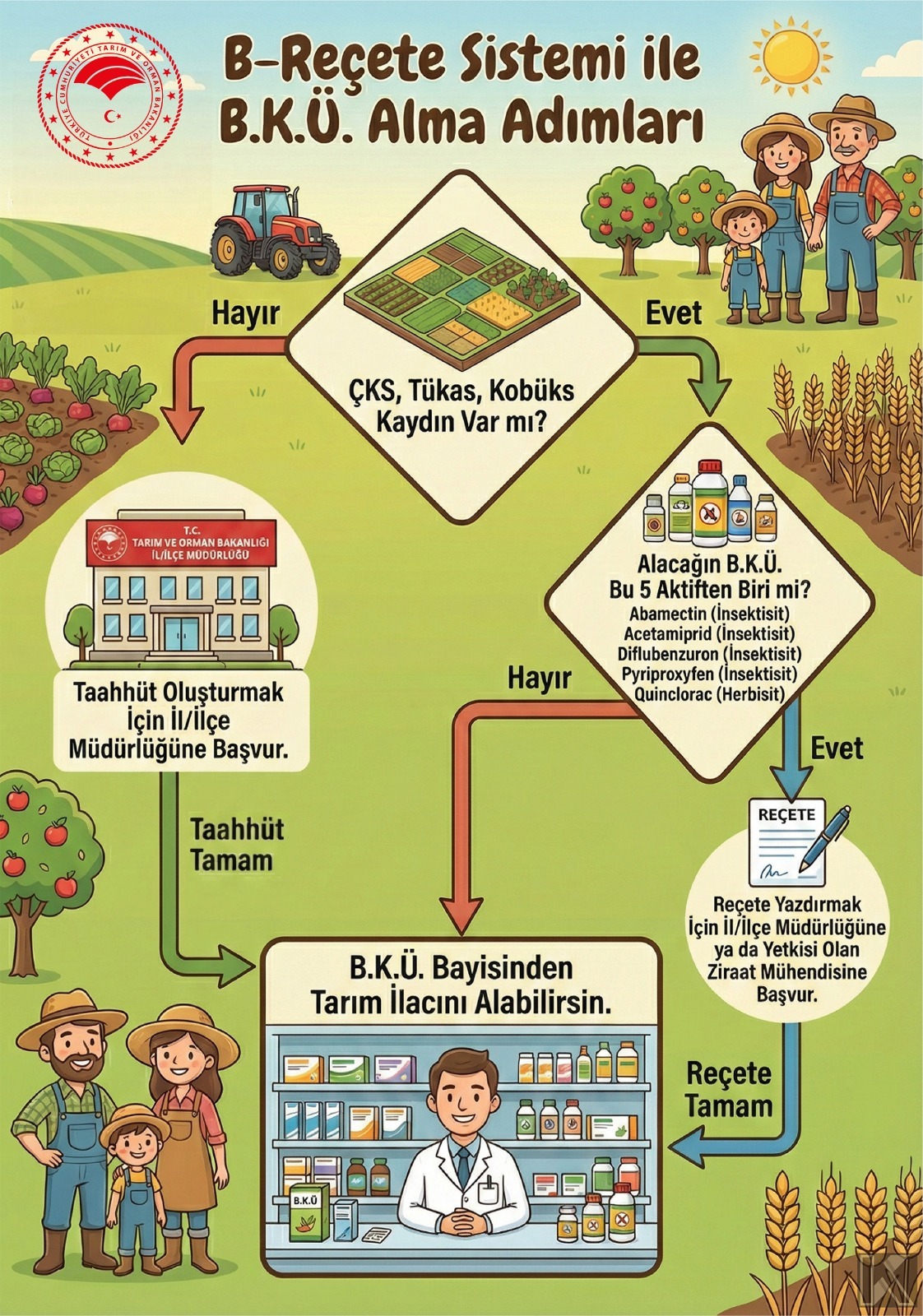 Bitkisel üretimde bilinçli bitki koruma ürünü kullanımının sağlanması, insan sağlığı ve çevrenin korunması ile tarımsal üretimde kalıntı risklerinin azaltılması amacıyla B-Reçete uygulaması 1 Temmuz 2026 tarihinden itibaren İlimizde başlayacaktır.