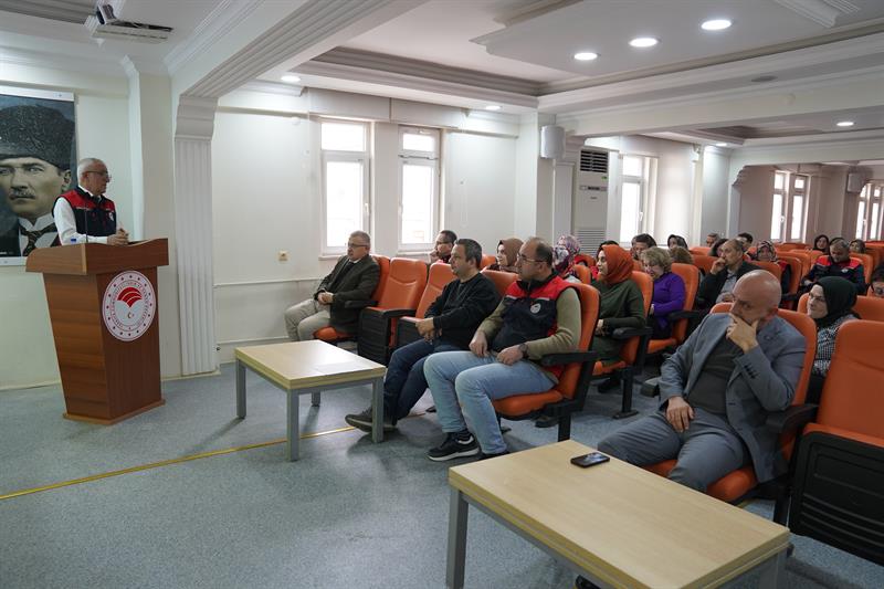 İl Müdürlüğümüz toplantı salonunda, 6331 Sayılı İş Sağlığı ve Güvenliği Kanunu çerçevesinde kurumumuz personeline 02 Nisan 2026 Tarih ve 33212 sayılı Resmi gazetede yayımlanan “Çalışanların İş Sağlığı Güvenliği Eğitimlerinin Usul ve Esasları hakkında Yönetmelik" Kapsamında Temel İş Sağlığı ve Güvenliği Eğitimi gerçekleştirilmiştir.