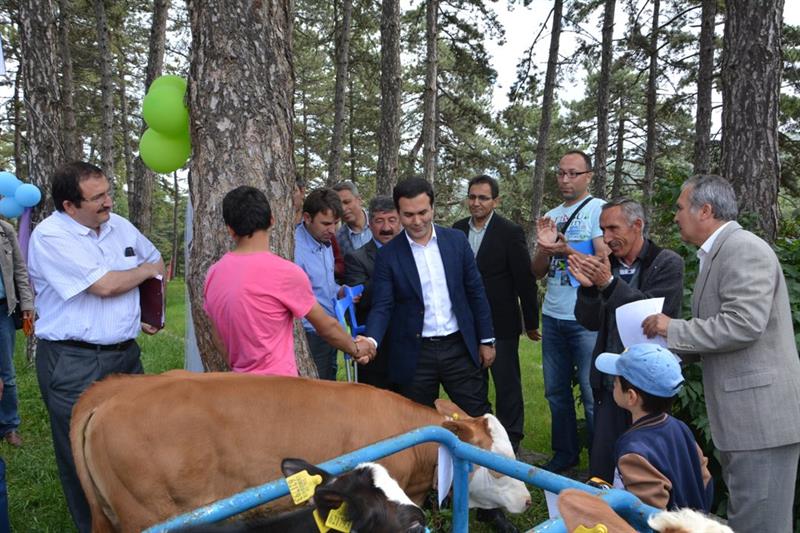 Kiraz ve Buzağı yetiştiriciliğinde Dereceye giren yarışmacılardan Birincilere yarım altın, İkinci ve üçüncülere çeyrek altın, dereceye giren diğer yarışmacılara da gübre, yem ve ilaç hediye edildi.