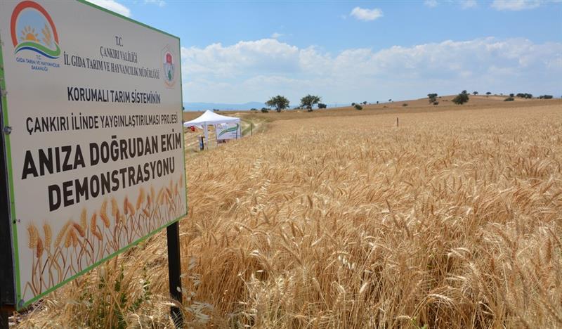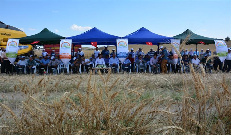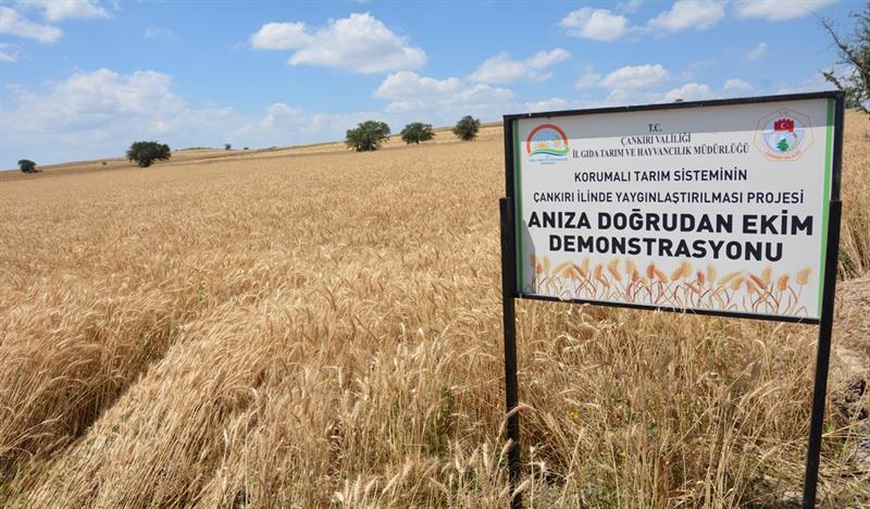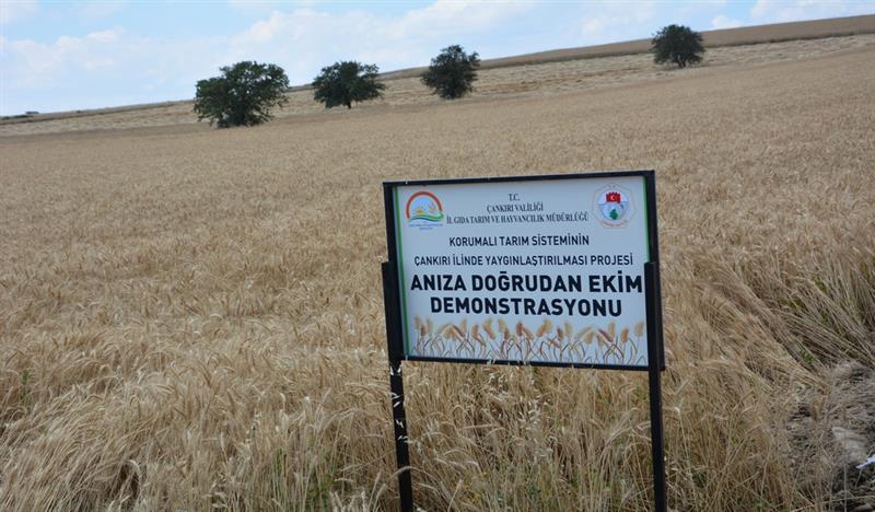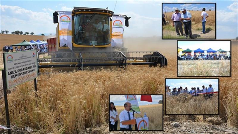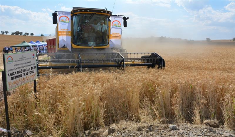 İlimizde uygulanmakta olan Korumalı Tarım Sisteminin Çankırı İlinde Yaygınlaştırılması Projesi kapsamında kurulan, Merkez İlçe Çivi Köyünde Anıza Doğrudan Ekim demonstrasyon alanında buğday hasadı tarla günü yapıldı.