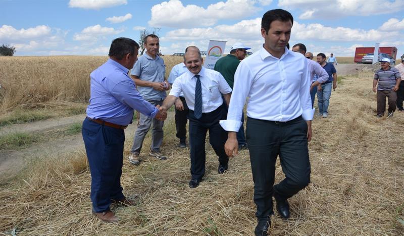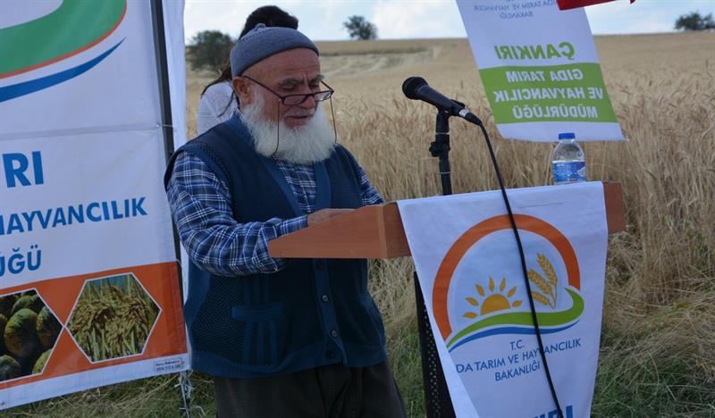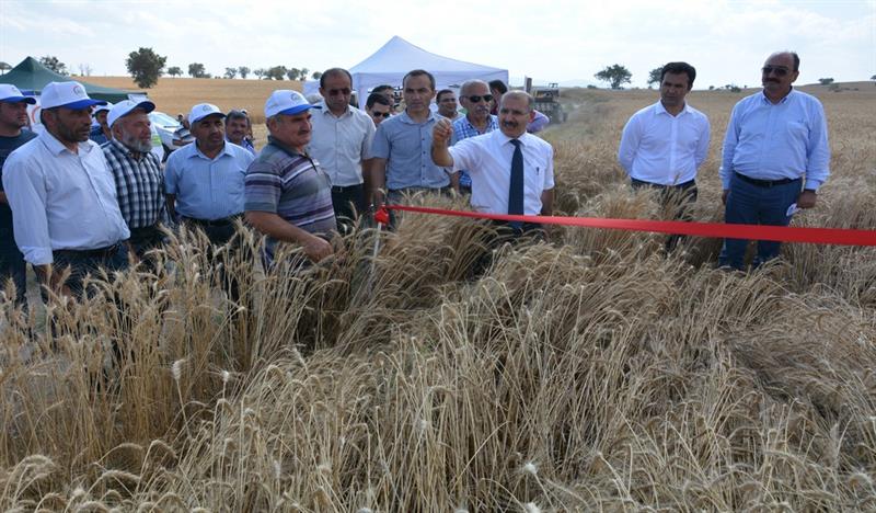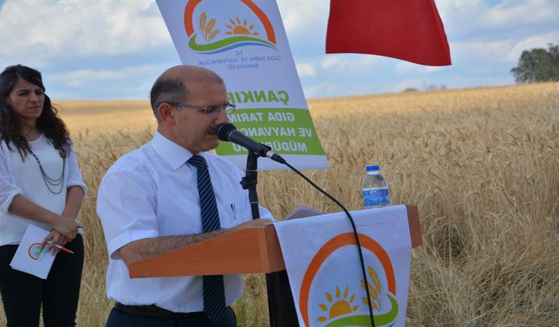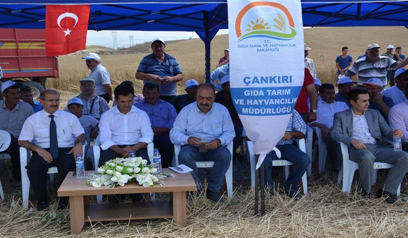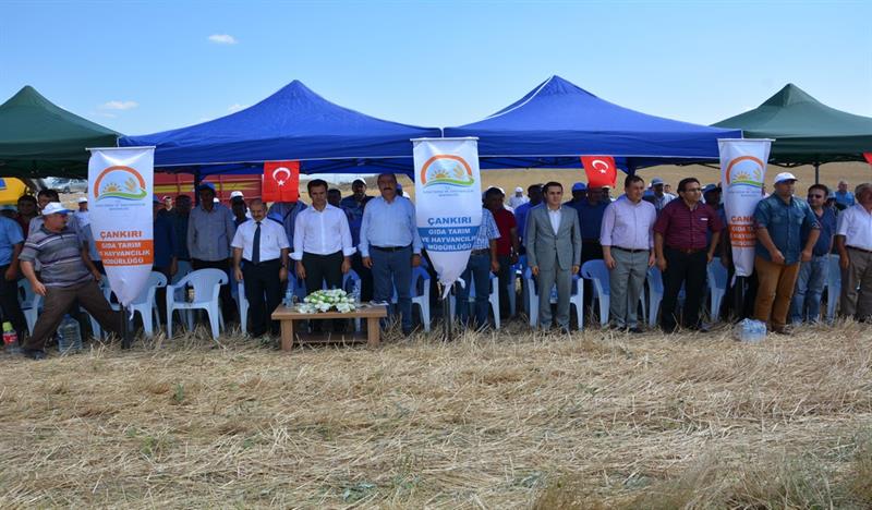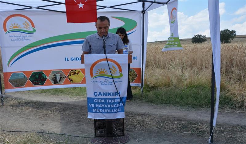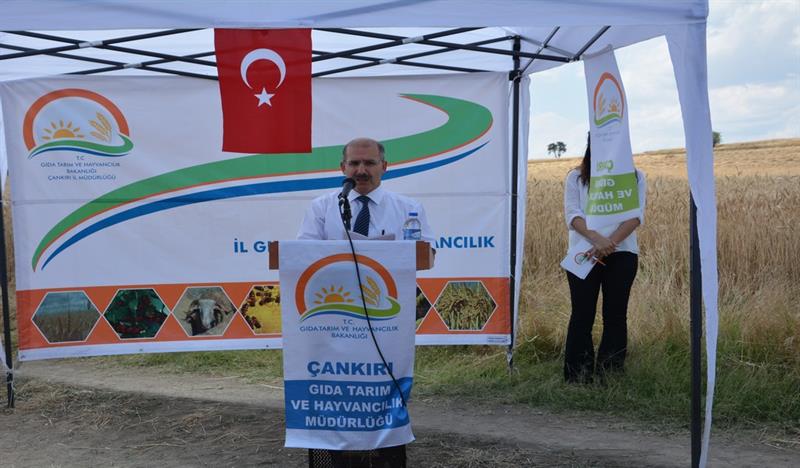 Sonrasında İl Müdürü Osman ÇAKIR konuşmasının başında; "15 TEMMUZ 2016 tarihinde Devletimize ve Milletimize darbe girişiminde bulunan hain ve canileri lanetleyerek Şehitlerimize Allah'tan rahmet, yaralılarımıza acil şifalar, ailelerine ise sabrı cemil dileklerini ilettikten sonra, 2015-2017 yıllarında uygulanacak olan projenin Bakanlığımız Eğitim Yayım ve Yayınlar Daire Başkanlığınca uygun görülmesini müteakip Tarla Bitkileri Merkez Araştırma Enstitüsü Müdürlüğü ile birlikte yürütülmeye başlandığını, Tarımsal yeniliklerin yaygınlaştırılması çalışmaları kapsamında İl Müdürlükleri tarafından hazırlanıp uygulanan ilk projelerden biri olma özelliği ile de önem arz etmekte olduğunu, Proje Kapsamında Merkez ve Kızılırmak ilçelerinde ikişer adet olmak üzere 4 adet demonstrasyon kurulduğunu, bu demonstrasyonların teknik personeller tarafından belirli aralıklarla kontrol edildiğini, 26 Ekim 2015 tarihinde ekimi yapılan bu demonstrasyon alanının bugünde hasadını gerçekleştireceğimizi" belirtti.