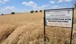 TOPRAK İŞLEMESİZ- DOĞRUDAN EKİM YÖNTEMİ Dünya'da yoğun olarak kullanılmaya başlanan doğrudan ekim, özellikle yıllık yağış ortalaması 200-500 mm arasında olan bölgelerde başarıyla uygulanmaya başlanmıştır. Bu yöntemde anızın yakılması ya da toprağa gömülmesi yerine bitki örtüsü olarak tarlada bırakılması ve bir sonraki üretim sezonunun başında Anıza Direkt Ekim Makinesi ile tohumun toprağa atılmasıdır.