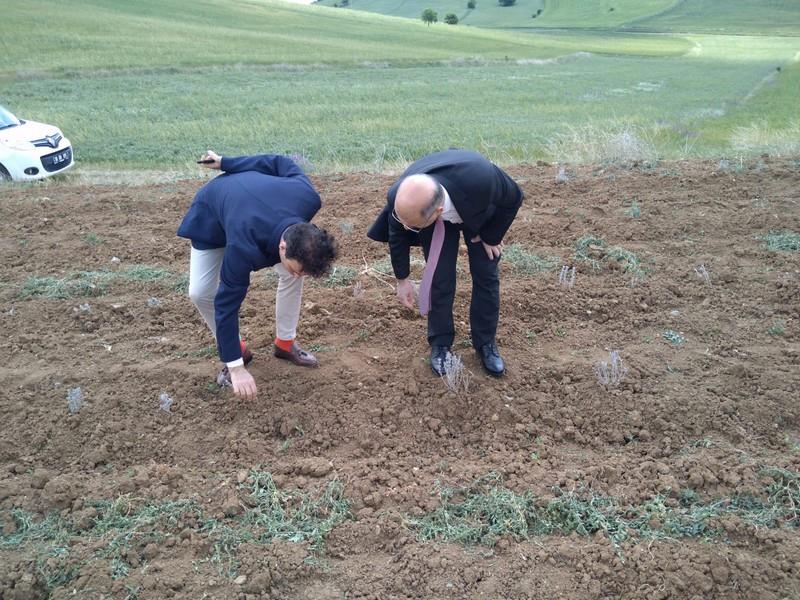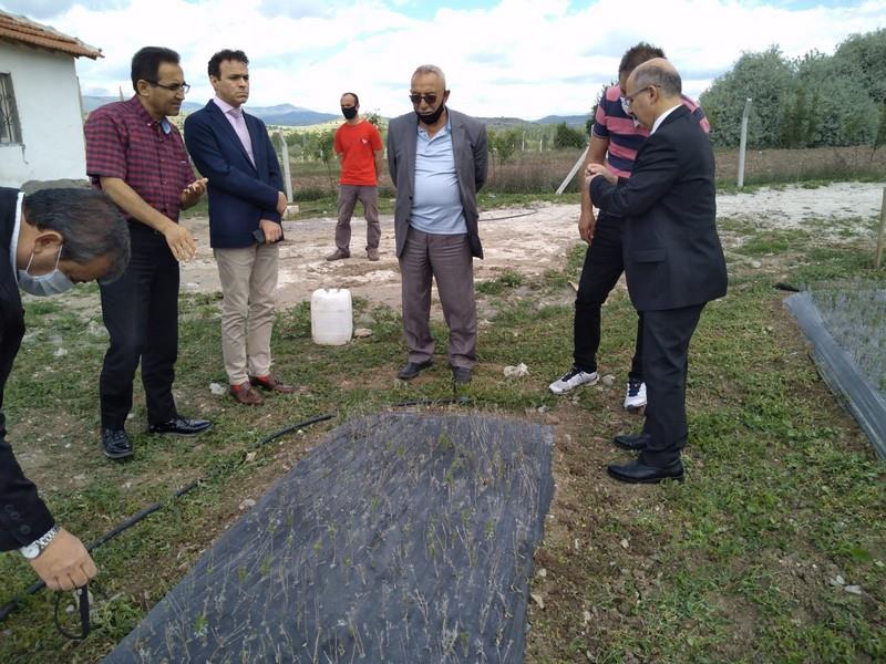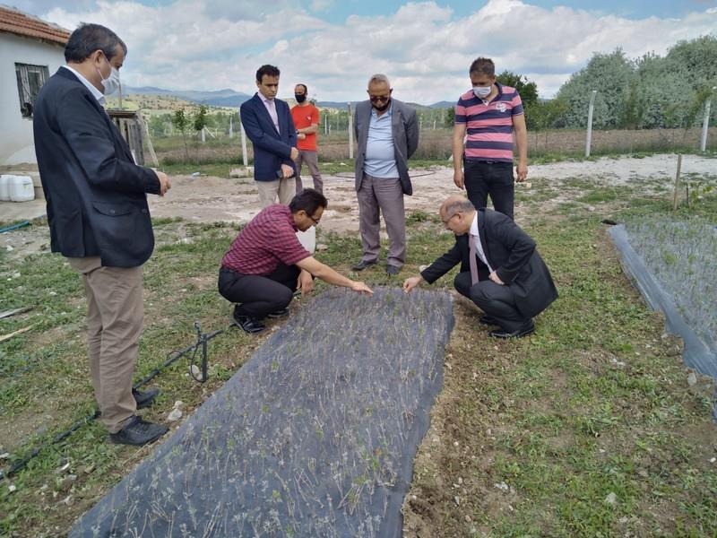 Daha sonra İlimizde alternatif ürün olarak yaygınlaştırılması planlanan Tıbbi ve Aromatik bitki yetiştirilen (lavanta, altın otu, oğul otu ve ada çayı) tarım arazileri ve bitkilerin gelişim durumları hakkında üreticilerden bilgi alındı. Çiftçiler yetiştirdikleri bitkilerin bölgeye uyumunun iyi olduğunu ve pazarlamada bir sıkıntı yaşanmaması halinde İlçelerinde bu bitkilerin yaygın bir şekilde yetiştirileceğini belirttiler.