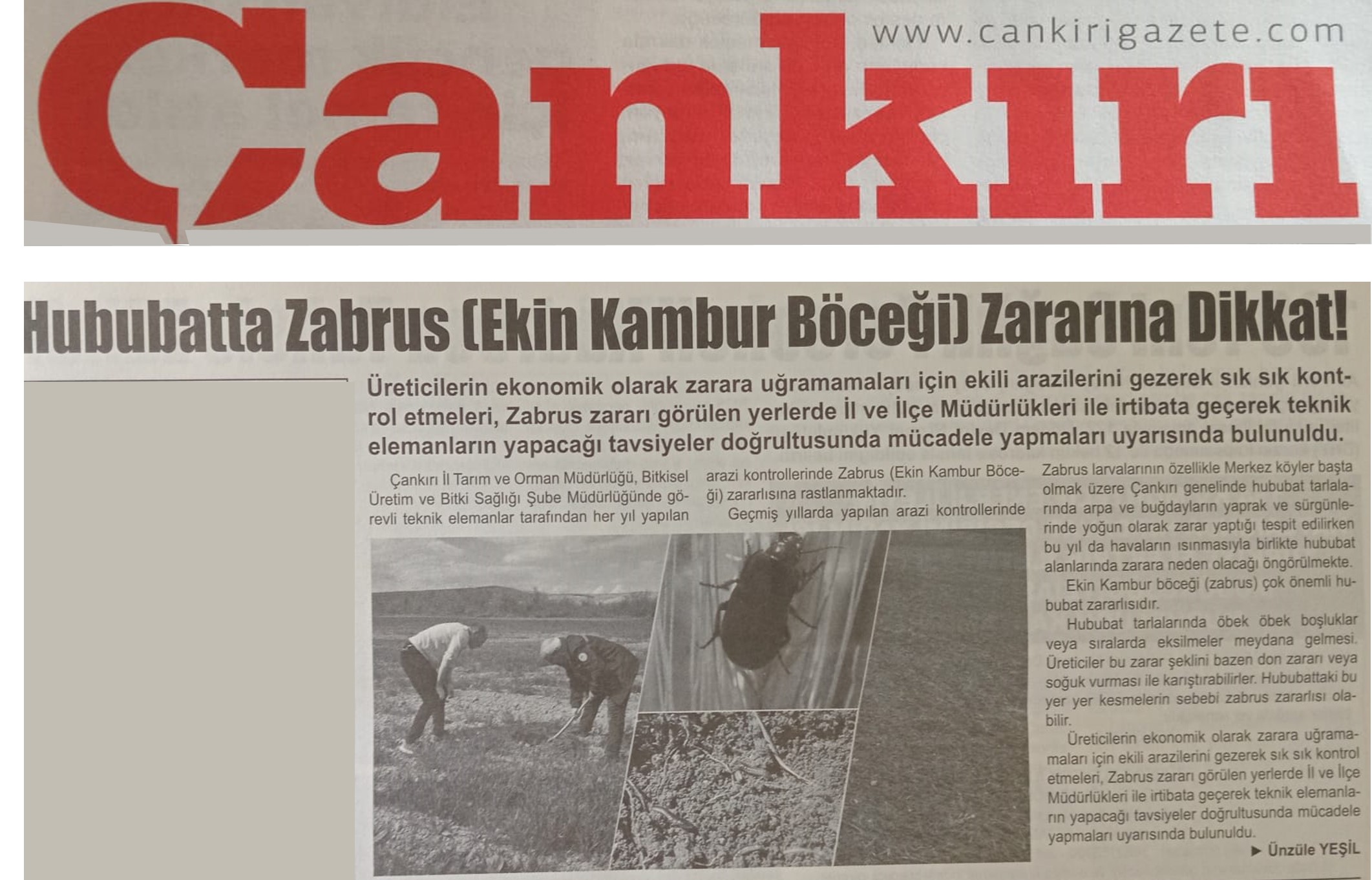 İl Tarım Müdürlüğü Ekin Kambur Böceği Zararlısına karşı uyardı