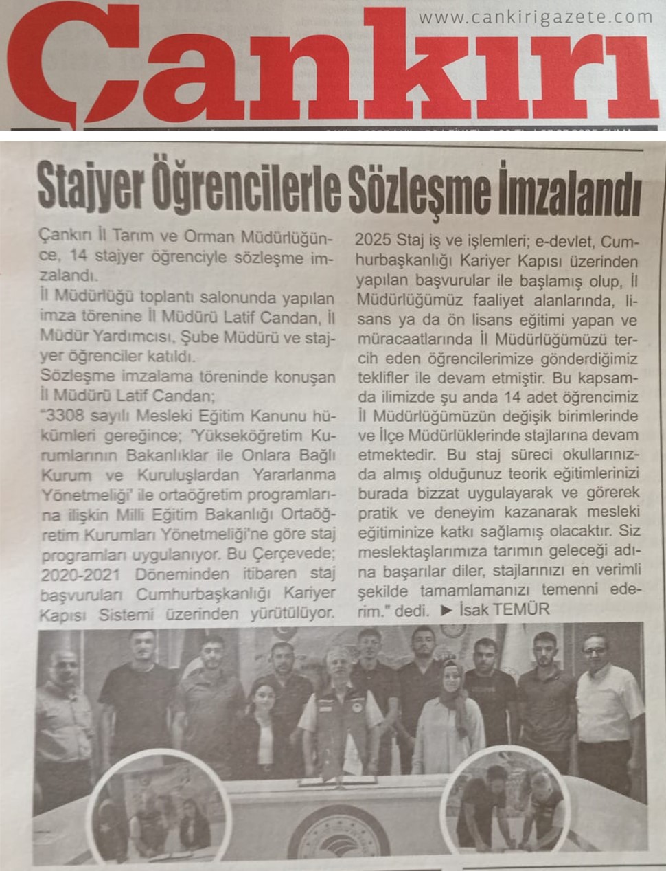 Çankırı'da 2025 Yılı Stajyer Öğrenciler İle Sözleşme İmzalandı